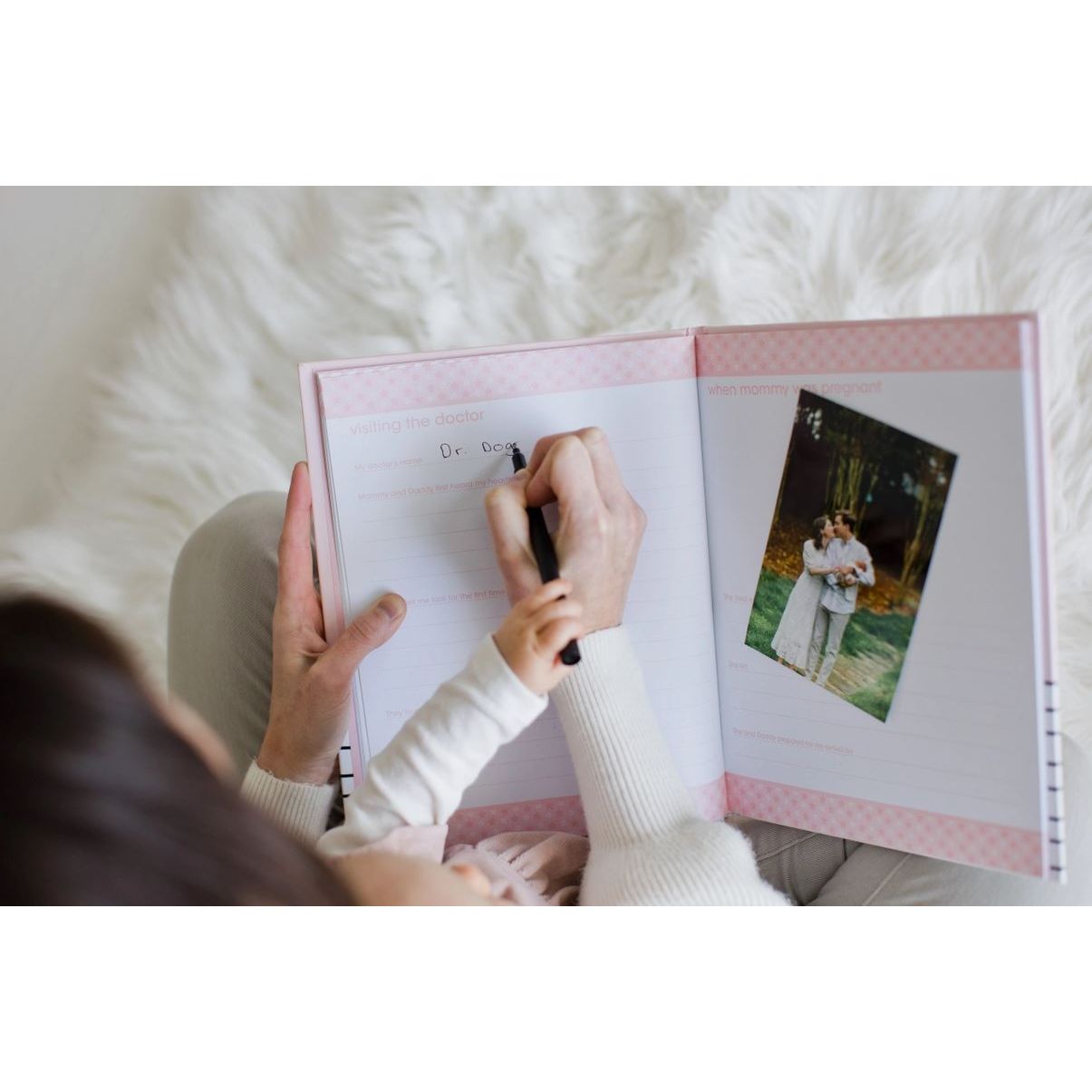 - Guided baby book to record baby's most cherished memories