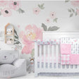 4 Pcs Crib Bedding Set Includes: Quilt Blanket 44x37 inches, Fitted Crib Sheet 52x28x8 inch deep pocket, Crib Skirt with 14 inch drop and Rail Cover 52 inches.