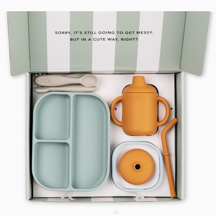 Ready, set, eat! Introducing our expert-approved toolkit of mealtime essentials for baby’s first food and drink! This set is the perfect new baby gift and a parent must-have. Each set includes all of the products needed for the first moment of introducing solids to little ones. Each product is designed to be used from parent led weaning or baby led weaning to independent eating.