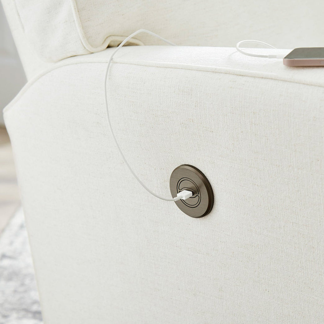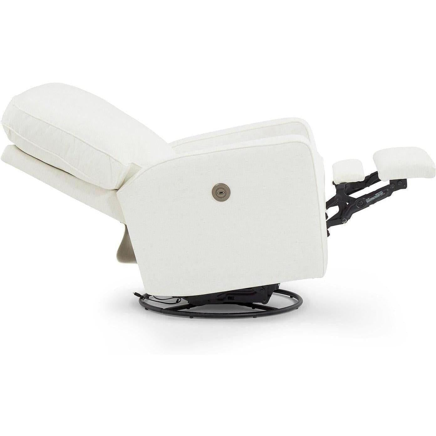 You’ll have a blast picking the fabric that best suits this swivel glider recliner. The squared corners and straight lines lend itself to be either contemporary or transitional and can coexist with any of your furniture. Comfort is smooth and effortless with the hidden inside reclining handle, or upgrade to power that features a stylish button on the side that also acts a USB charger. Choose from a wide assortment of fabrics to suit your decor. The Bilana Swivel Glider is a stylish recliner that is ideal for any room of the home, including the nursery.